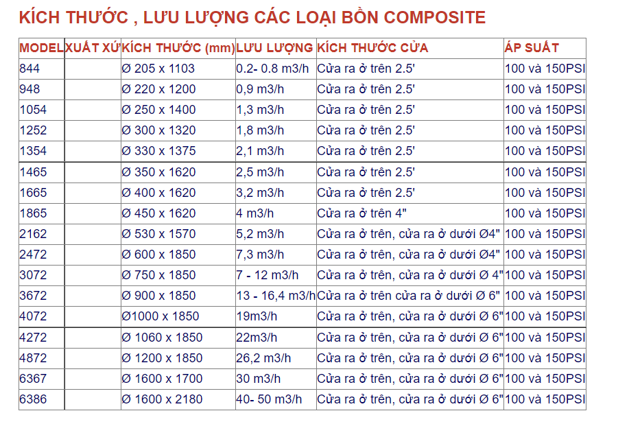 Cột lọc 1665 được sử dụng để chứa các vật liệu lọc nước, phục vụ cho các hệ thống xử lý nước sau: